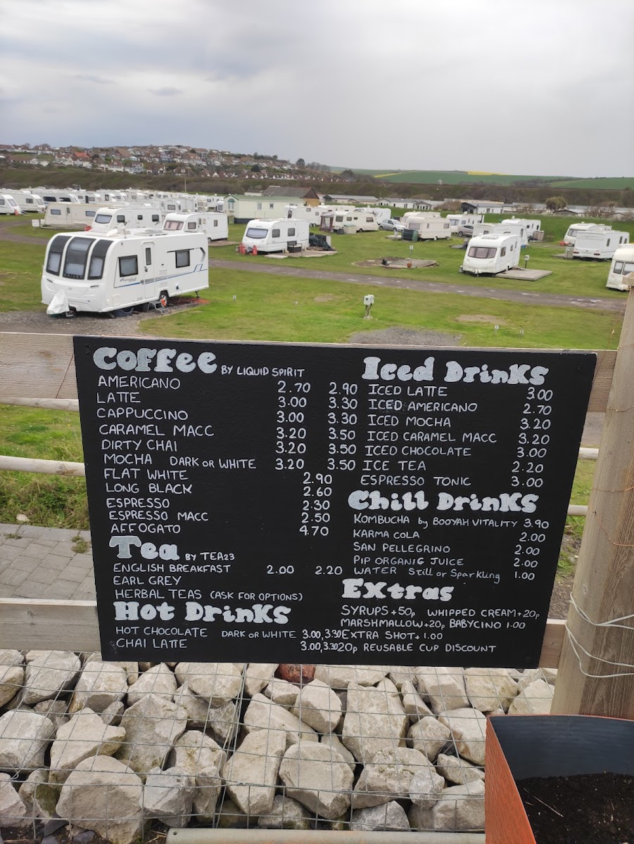 This menu is ideal for breakfast, coffee breaks, or light meals, with a format that supports quick ordering and casual dining. Seating is available on site, including picnic tables, facilitating a relaxed experience for visitors. The variety of both hot and cold beverages accommodates different preferences throughout the day.